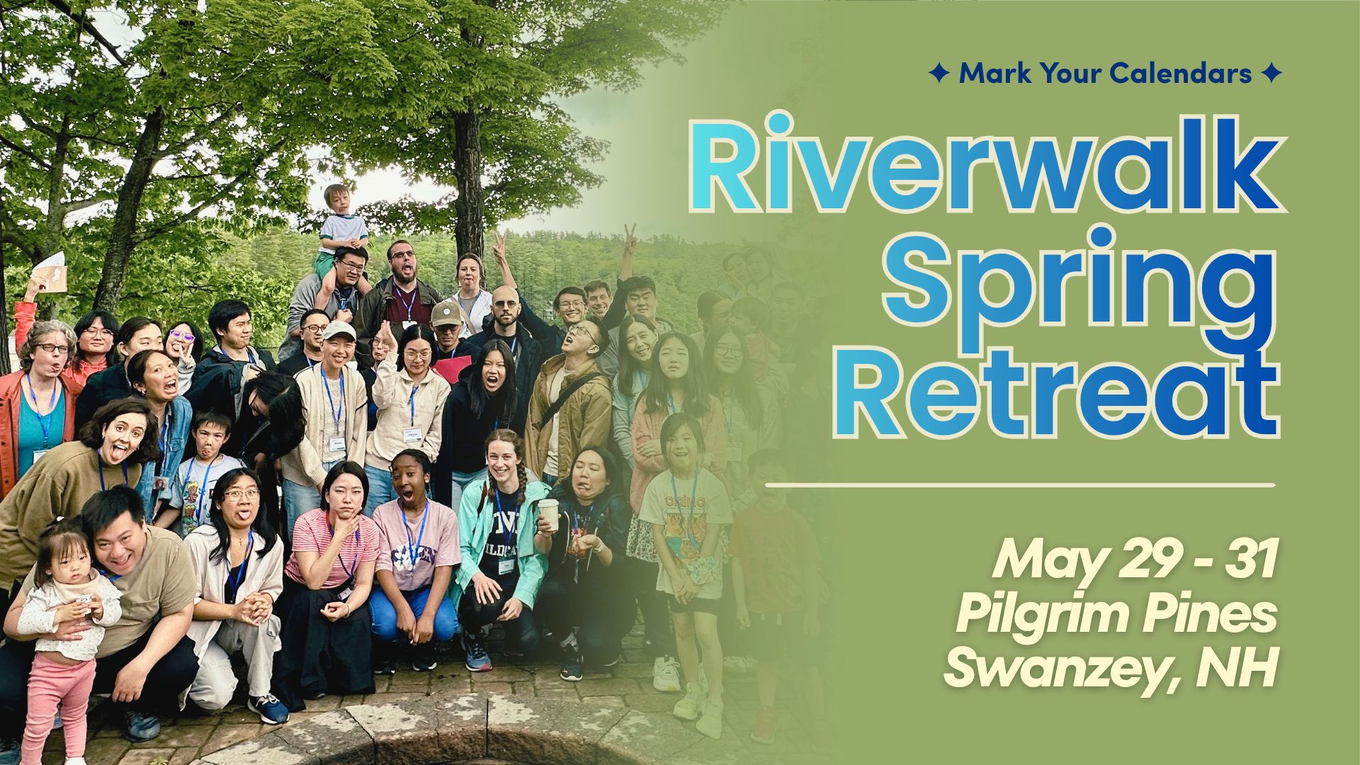 Save the Date for our All-Church Spring Retreat from May 29-31 at Pilgrim Pines, NH! More info to come!